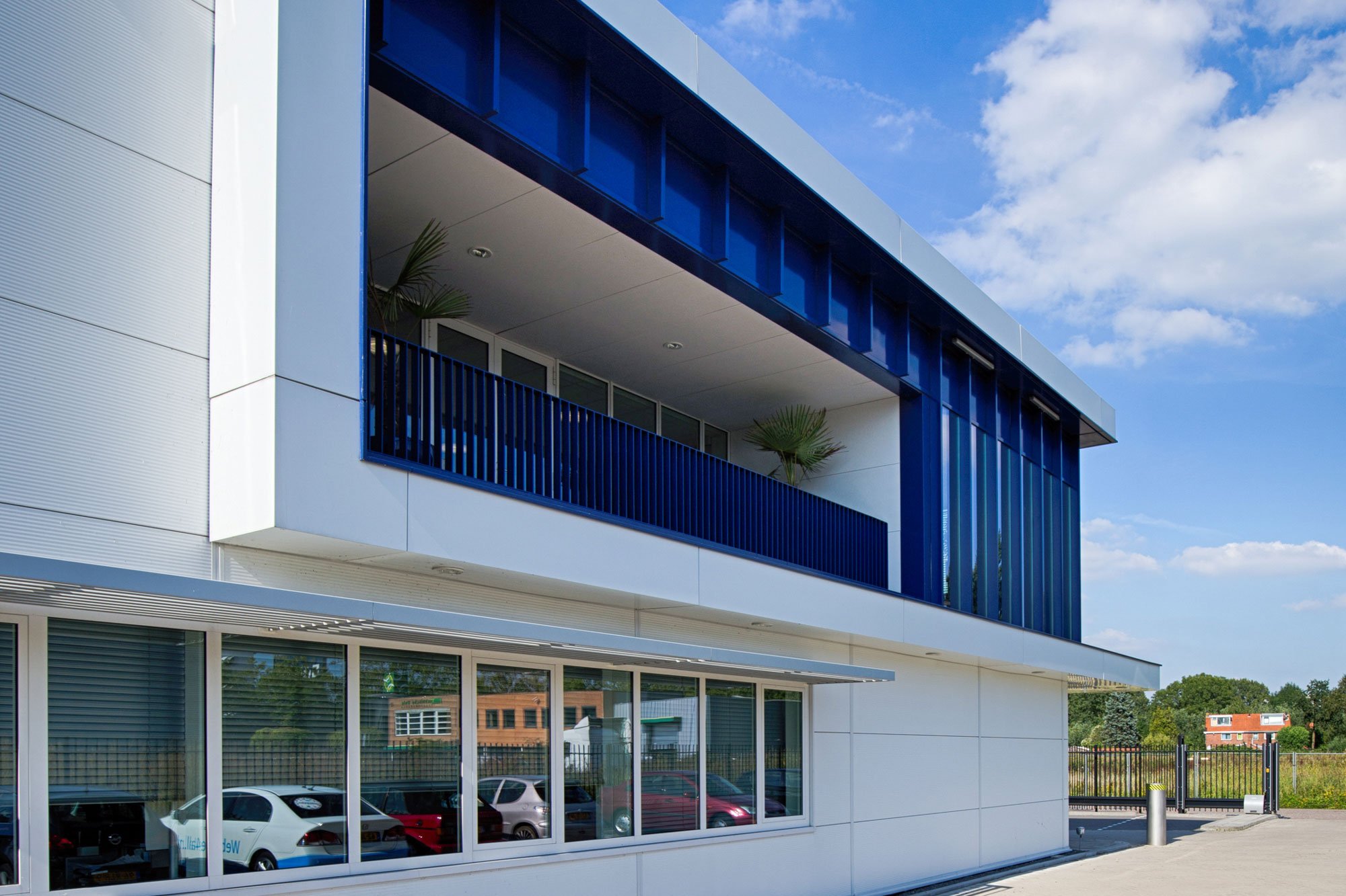 Het behouden van onze herkenbare huisstijl was een essentieel aspect van het ontwerp. Met een witte gevelafwerking en blauwe accenten sluit het gebouw aan bij de bestaande vestigingen van itsme. Het magazijn is voorzien van witte sandwich gevelpanelen, terwijl het kantoor wordt gekenmerkt door een opvallend wit aluminium kader met blauwe invullingen, die trouw blijven aan de huisstijl. Aan de achterzijde zorgen blauwe semitransparante panelen voor natuurlijk daglicht in het magazijn.