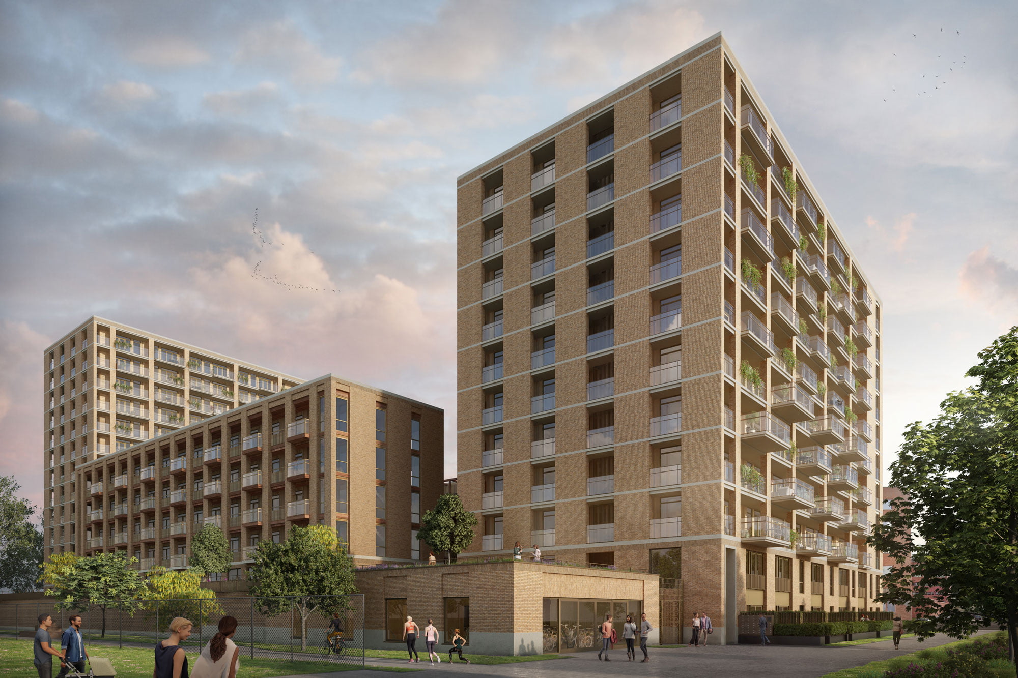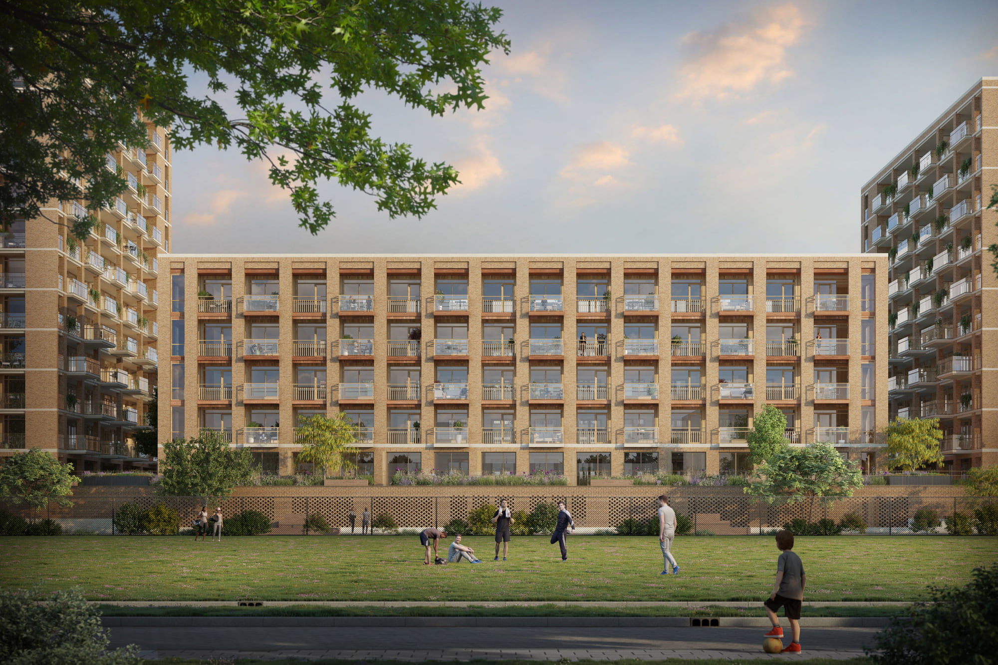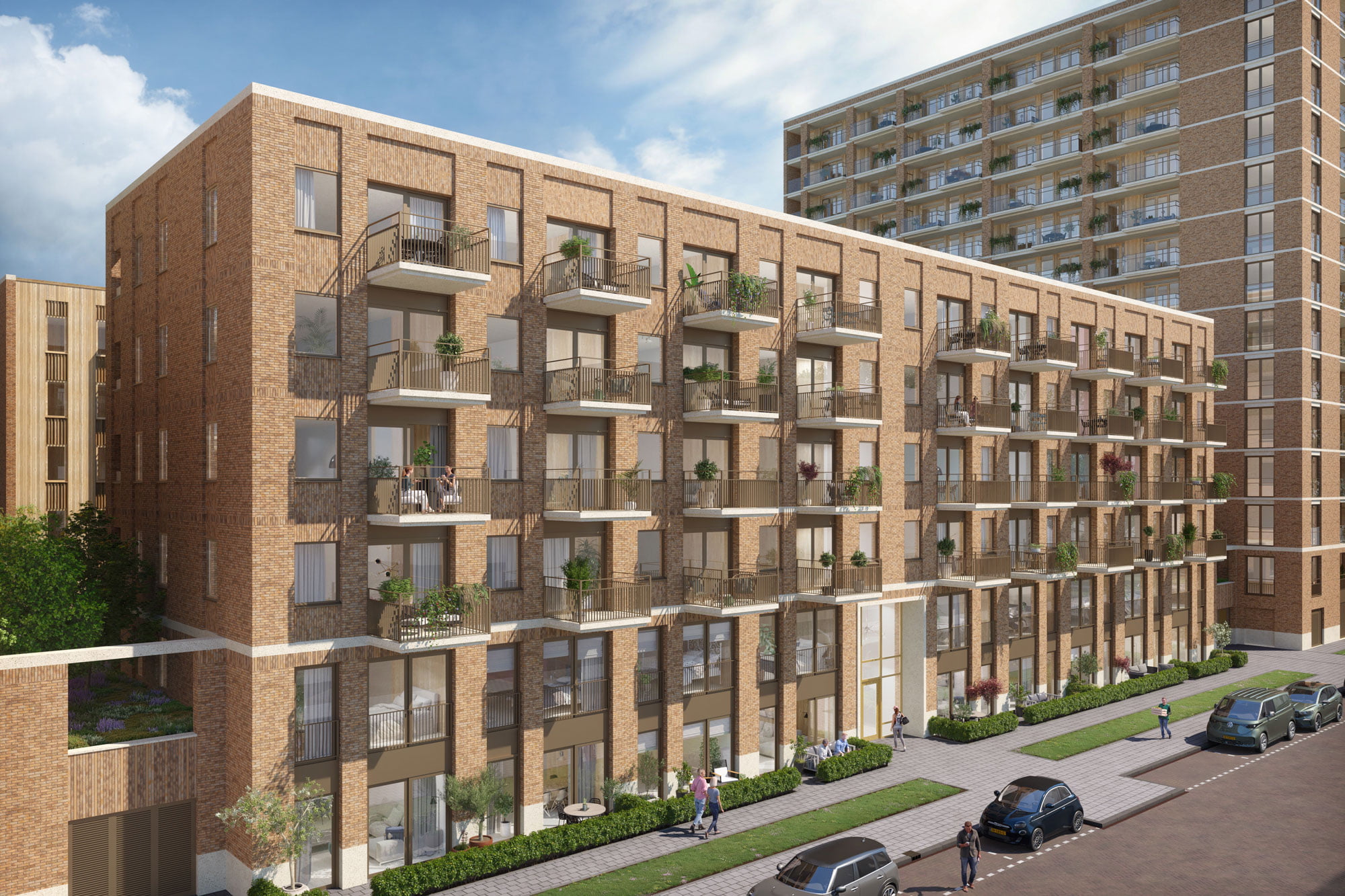Het karakter van de strokenbouw komt naar voren in de heldere, eenvoudige hoofdvorm van de bouwblokken. De benadering van architectuur is gericht op het versterken van de verschijningsvorm vanuit stedenbouwkundig oogpunt, waarbij zowel de vormtaal als de materialisatie het concept verder tot uiting brengen. Het ensemble van de bouwblokken wordt versterkt door het bindende element van het plateau en een doorlopende dubbelhoge plint met een divers woonprogramma, waardoor samenhang ontstaat. Elk bouwblok is ontworpen met subtiele variaties in architectuur, vaak met een nadruk op een meer horizontale of verticale benadering van het gevelontwerp. Dit zorgt voor een verfijnde uitstraling en draagt bij aan de diversiteit binnen het ensemble. Het lage Land staat bekend om zijn gevarieerde kleurenpalet in de bebouwing, waarbij baksteen een veelvoorkomend materiaal is. Onze compositie bestaat uit vier stedelijke bouwblokken die harmonieus aansluiten bij de omgeving door gebruik te maken van metselwerkarchitectuur. Voor een frisse, hedendaagse uitstraling is gekozen voor een warme, beige zandtint in het metselwerk, aangevuld met accentmaterialen zoals beton en hout.